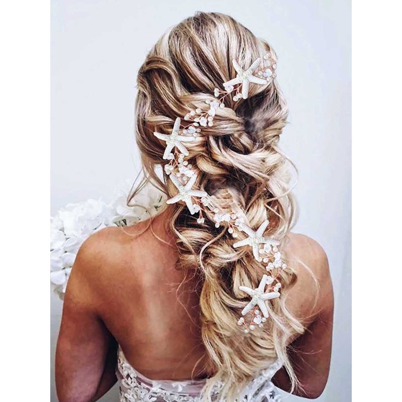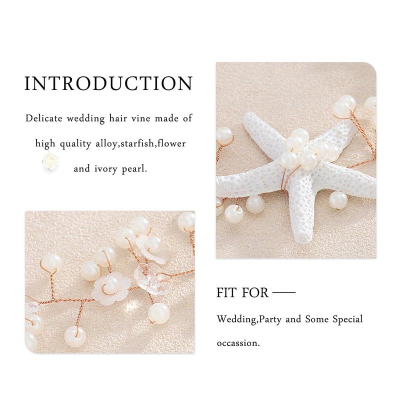 • Starfish wedding hair accessories are made of alloy and pearl ,the wire is pretty well made and is a great addition for your hairstyle.