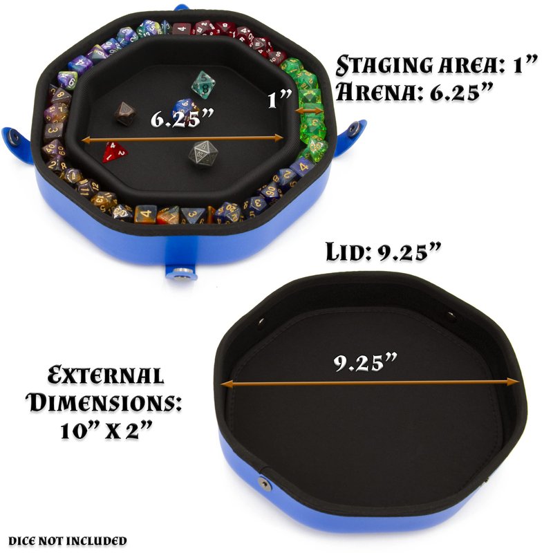 - Bigger is Better: Nobody wants a tiny dice mat or dice tray, so the CASEMATIX Dice Tray measures 10" x 2" in external dimensions. The dice arena measures 6.5" across and the staging area is 1" wide to accommodate most standard RPG dice.