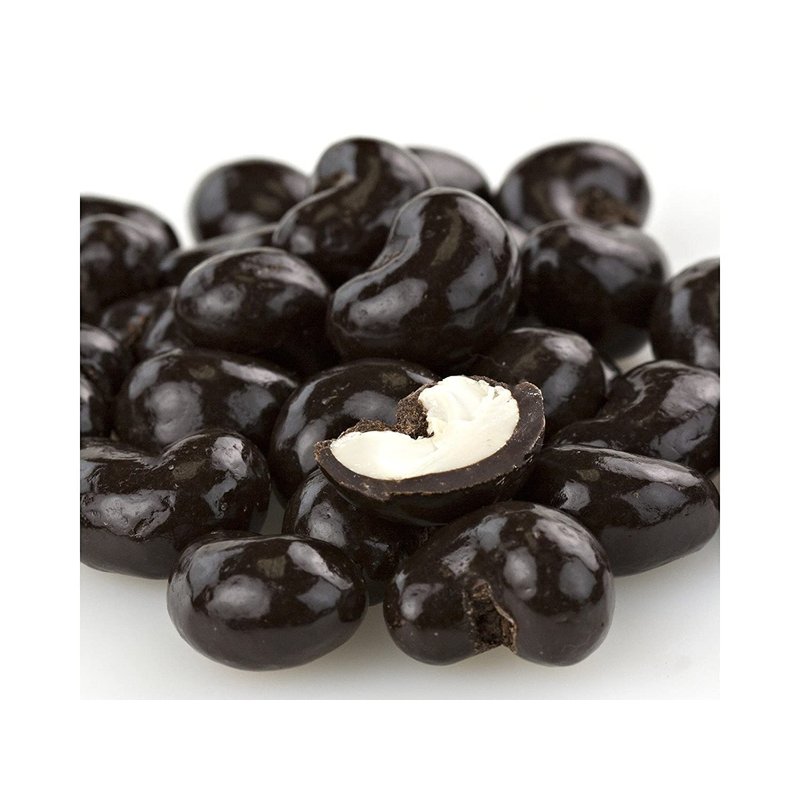 Dark Chocolate Covered Cashews. Fresh, whole cashews covered in rich, dark chocolate. This listing is for a bulk 2 pound bag of dark chocolate cashews.