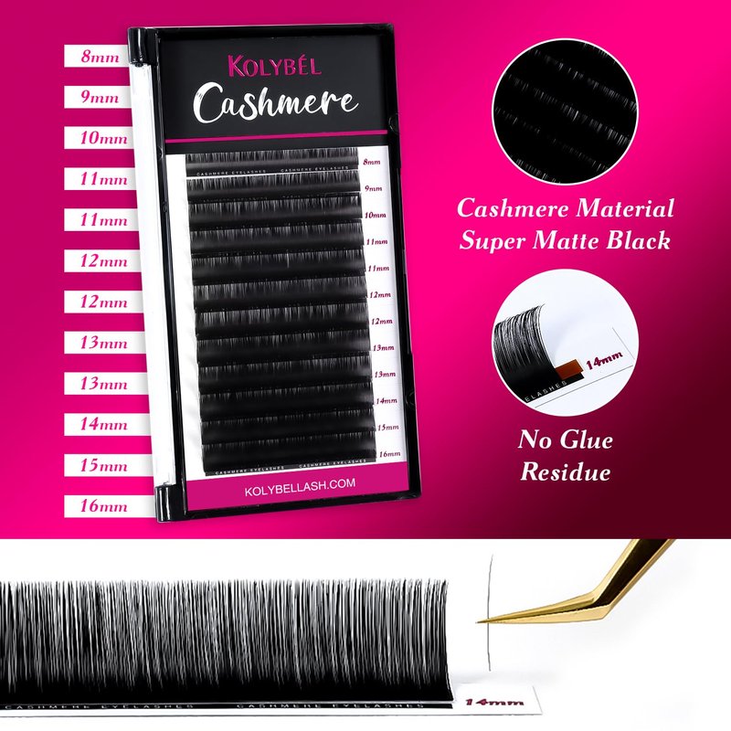 - Size Specifications:Cashmere Premium Eyelash Extension has 12 Rows/ Tray. KOLYBEL provide more size with you: 0.03/0.05/0.07/0.15 Thickness, J/B/L/C/CC/D Curl, 8-16mm Mixed Length/15-20mm Mixed Length/10-18mm Single Length.