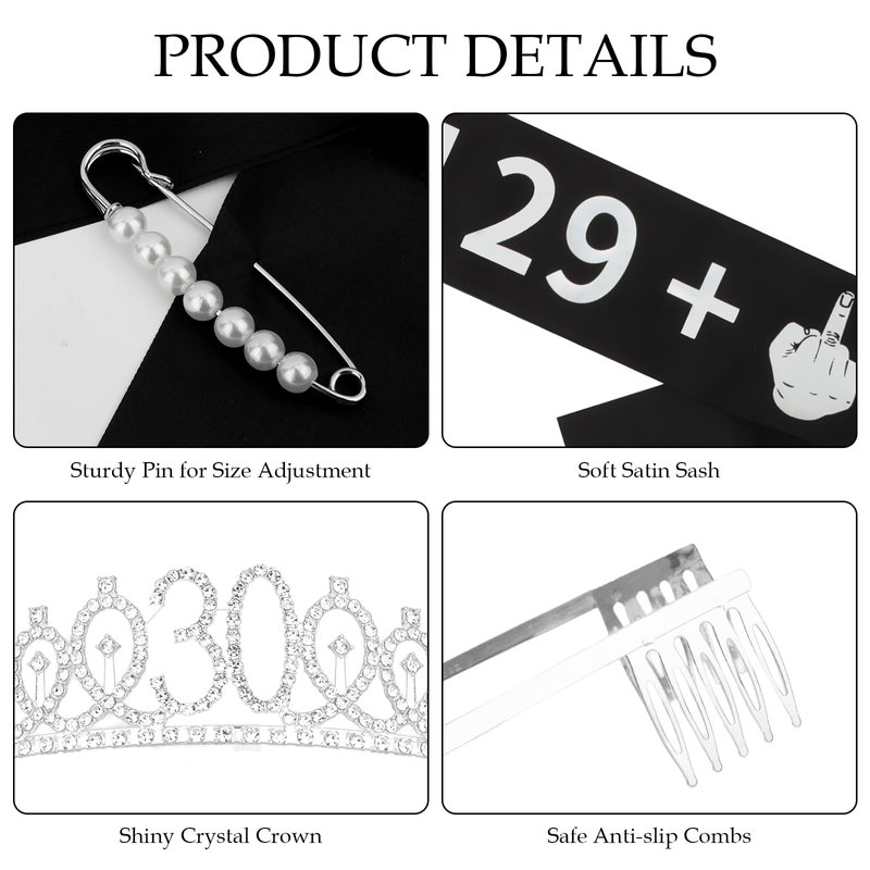 • 30th Birthday Set: The birthday kit includes "I AM 29+ "sash, 30th rhinestone tiara and pearl pin. You will be like a queen in your birthday celebration