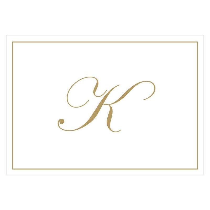 Caspari Gold Embossed Initials Boxed Note Cards in Letter K, 8 Cards & Envelopes