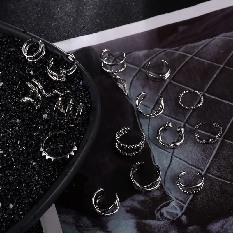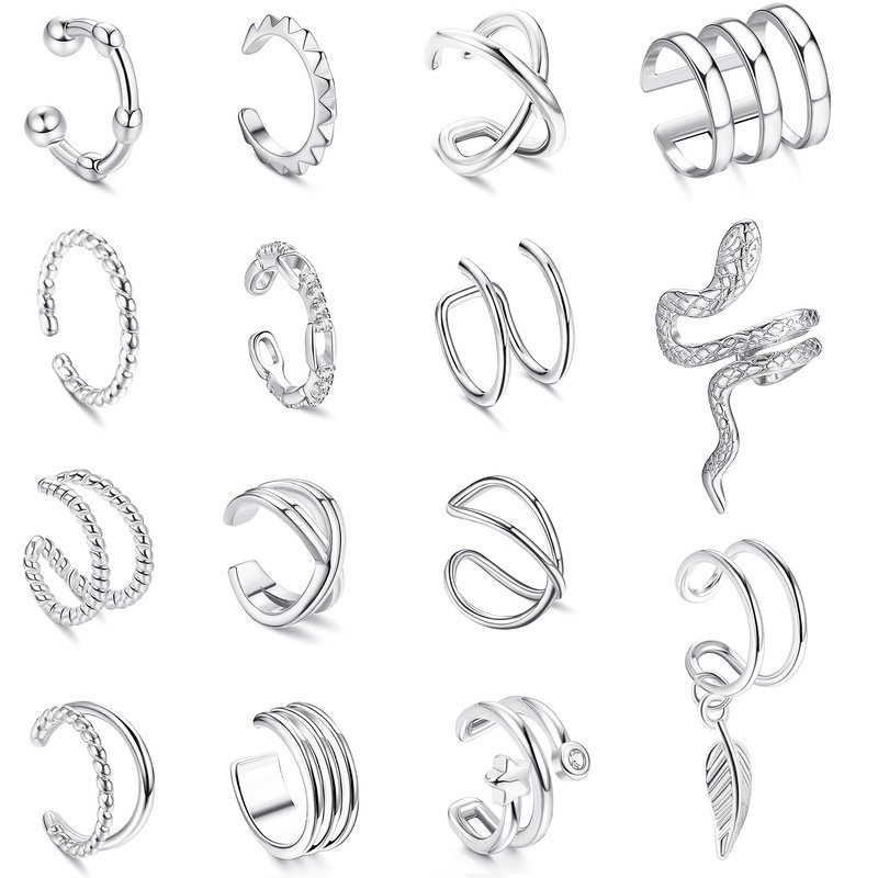 - SET OF 15 PCS EAR CUFFS💕You Will Get 15 Pcs Cuff Earrings in Various Styles, Dainty No Piercing Cartilage Clip On Wrap Earring Set. Hollow Cuff Earrings, Personalized Cross X, Trendy 3 Row Wrap, Classic U Shape Dome, CZ Cartilage Earrings, Snake Cuff, etc. You Can Wear Them Individually, Side By Side Or Any Way You Like, Add a Unique Charm to Your Ears.