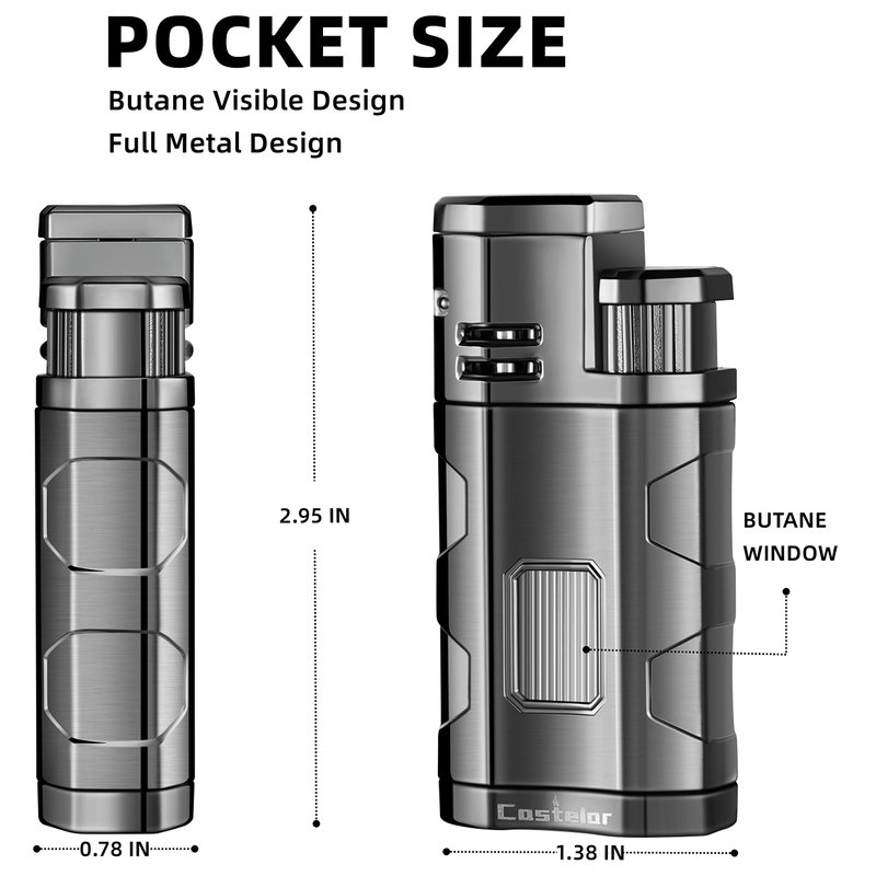 - Visual Butane Tank Design: Castelar cigar lighter is a refillable butane lighter, designed with a visible tank which makes it easy to observe the butane level when filling and using, it is convenient to remind and replenish butane in time.