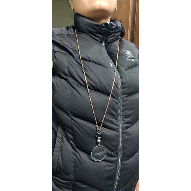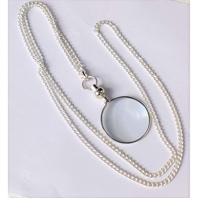 - ✔️ This magnifying optical quality glass lens measuring at 1-3/4" inches wide. Elegant necklace chain measures 36" inches in length. Mini compact, palm-sized, easy to put into pocket