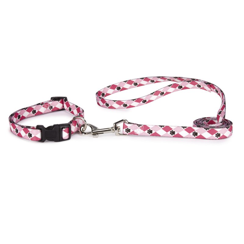 Casual Canine Nylon Pooch Patterns Dog Collar, Fits Necks 10" to 16", Pink Argyle