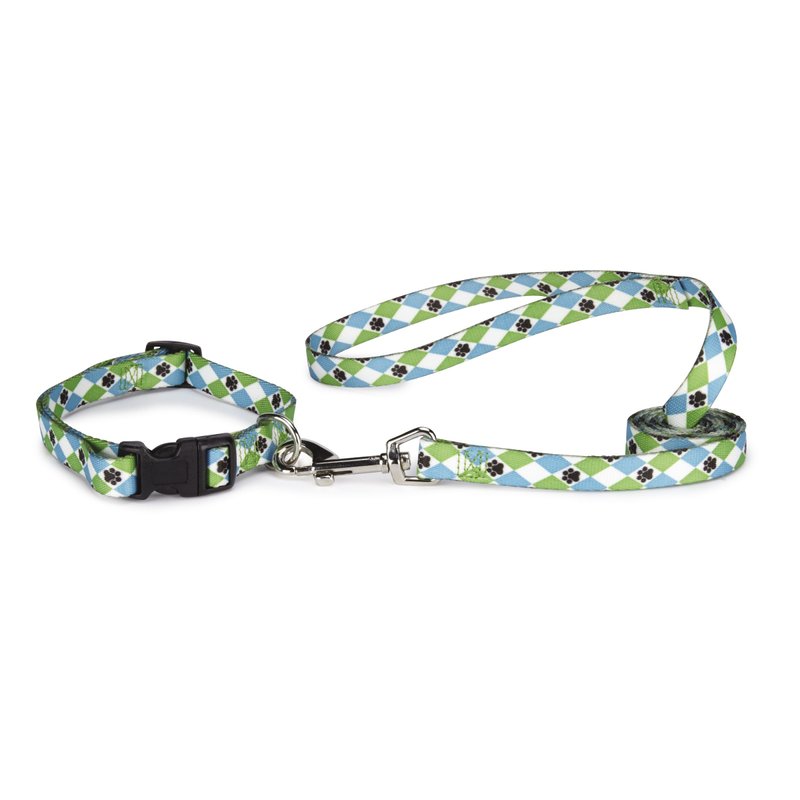 Casual Canine Nylon Pooch Patterns Dog Collar, Fits Necks 14" to 20", Blue Argyle