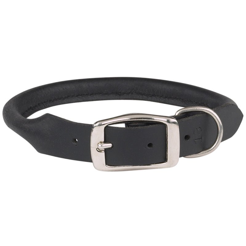 Casual Canine Rolled Leather Dog Collar, Fits Necks 14" to 16", Black