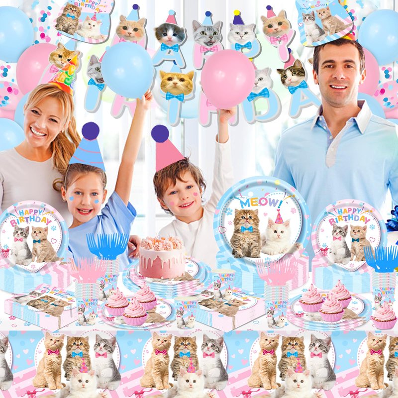 - Cat Themed Party Supplies Set: Our cat themed birthday party supplies feature bright colors and cute cat designs that will make your kids and guests squeal with excitement, also our kitten party decorations kit can bring much happiness to your family and friends.