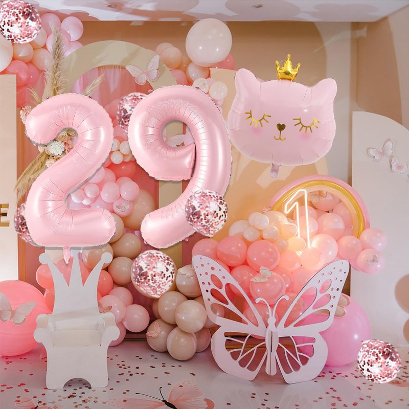 Cat Birthday Decorations, Cat Balloons, Pink 29 Balloon Numbers 40 inch, Cat Themed Birthday Party Decorations, 29 Balloons for Girls Birthday Party Decorations
