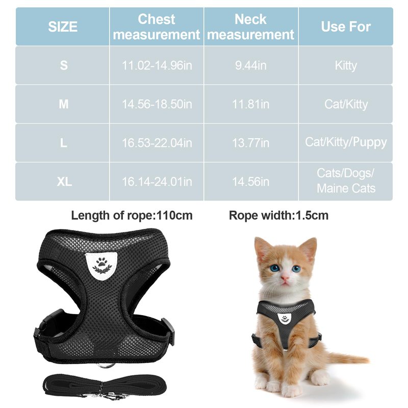 - 【Anti-Escape】This cat harness is made of adjustable straps and snaps, which can be very good for your cat to wear and snugly fit. It also protects your cat from being stretched and uncomfortable. It is a great way to get your cat to accept a pet harness.