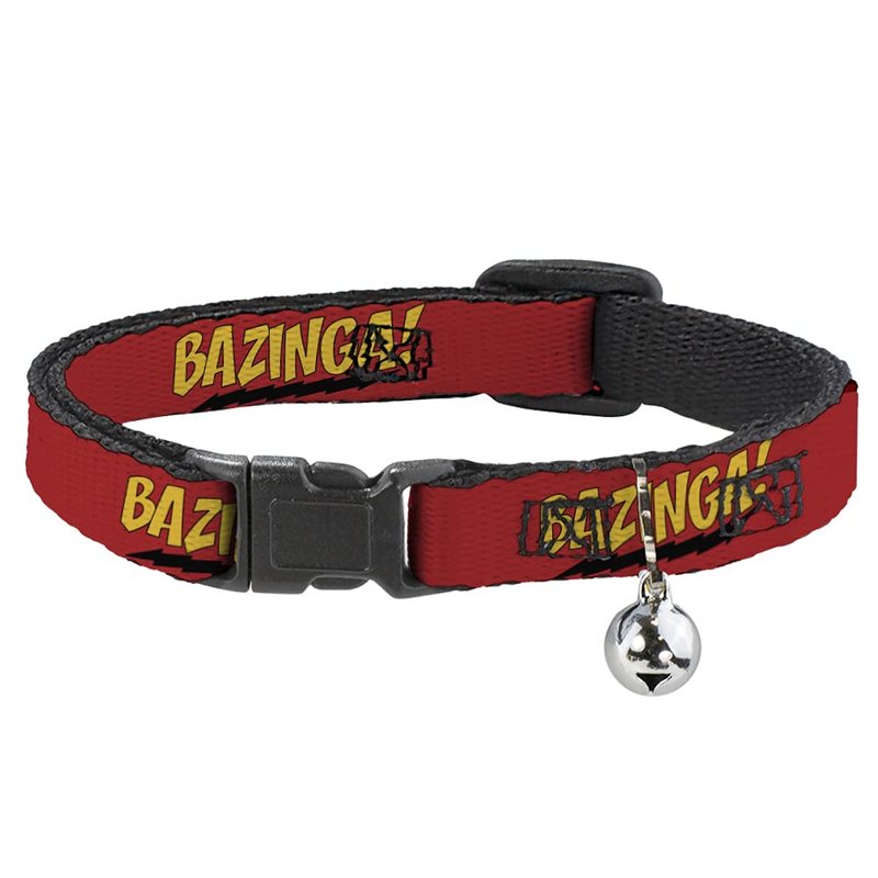 - Style: Buckle-Down Breakaway Cat Collar - BAZINGA! Red/Gold/Black - 1/2" Wide - Fits 8-12" Neck