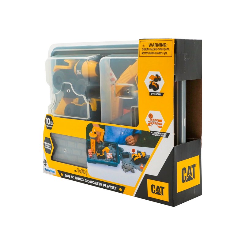 CAT Construction Toys, Dig N' Build Concrete Playset with 12 OZ of Compound - Storage Container