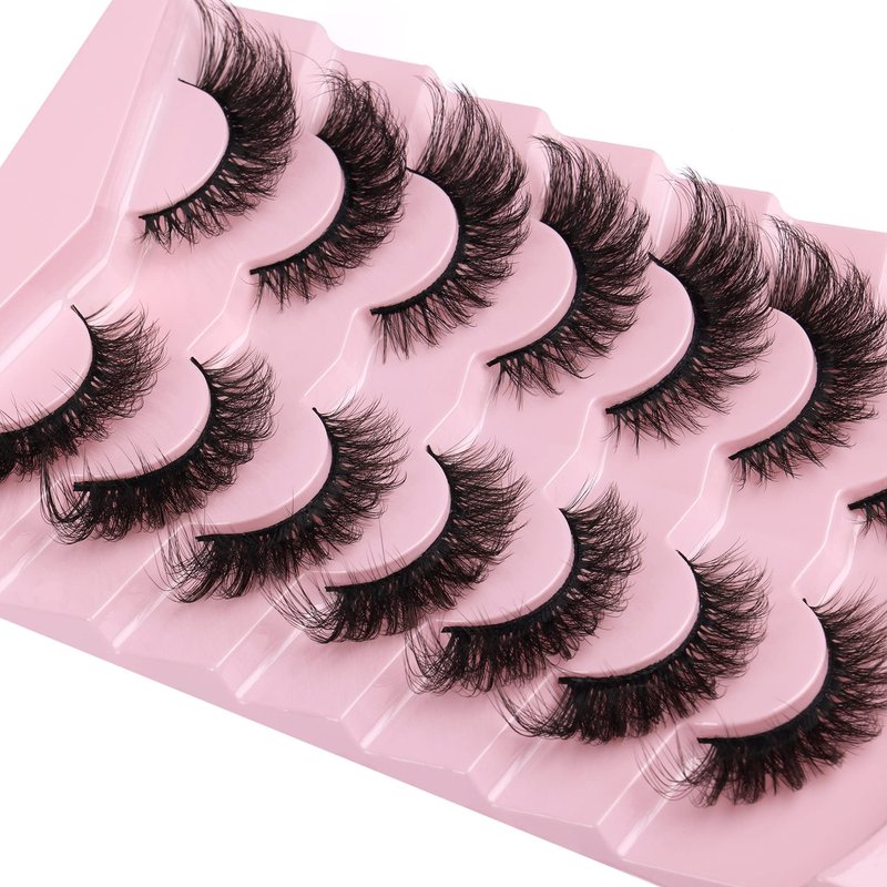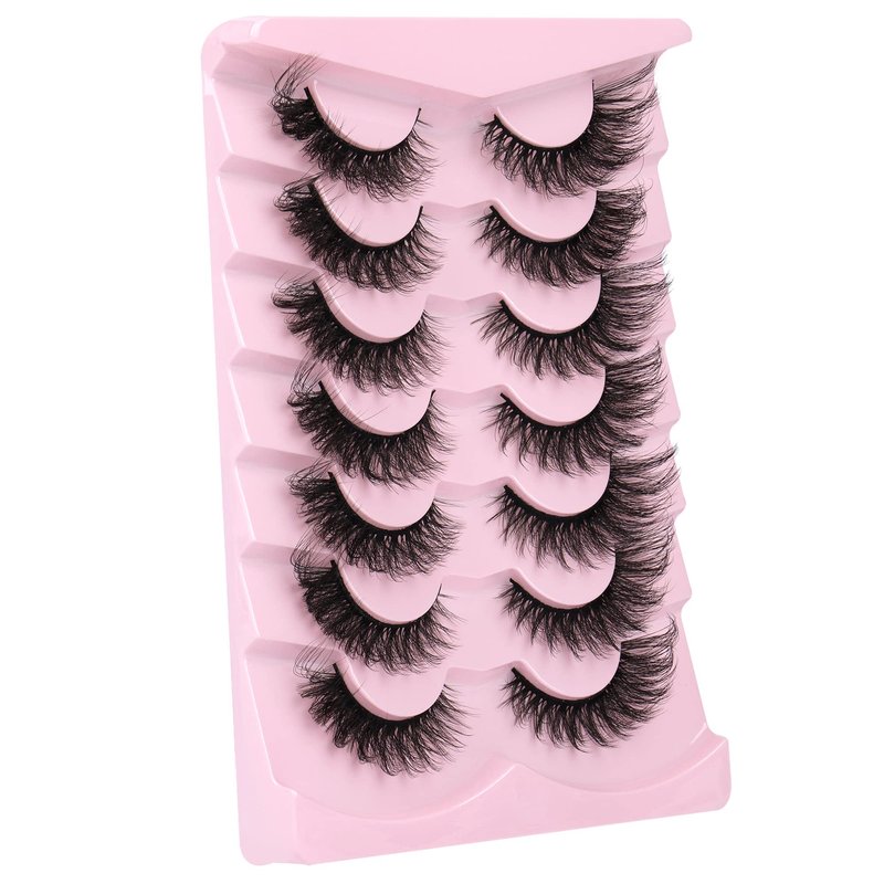 Cat Eye Fake Lashes Dramatic False Eyelashes Faux Mink Lashes Extension Wispy Fluffy Natural Look 7 Pairs Pack Fox Eye Lash 8D Volume Thick long Reusable Light Cruelty-Free