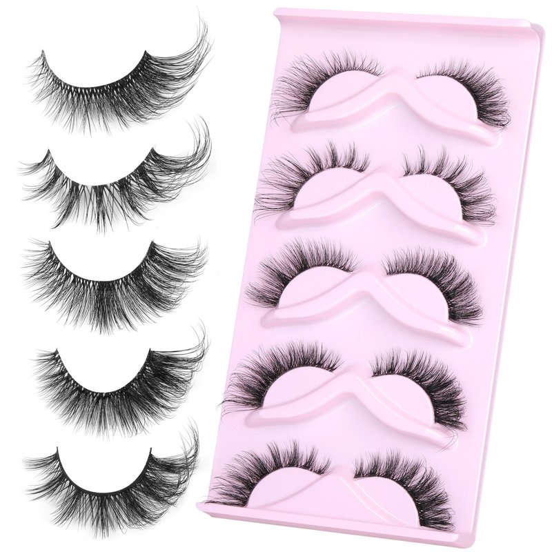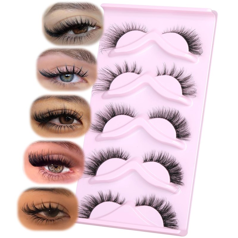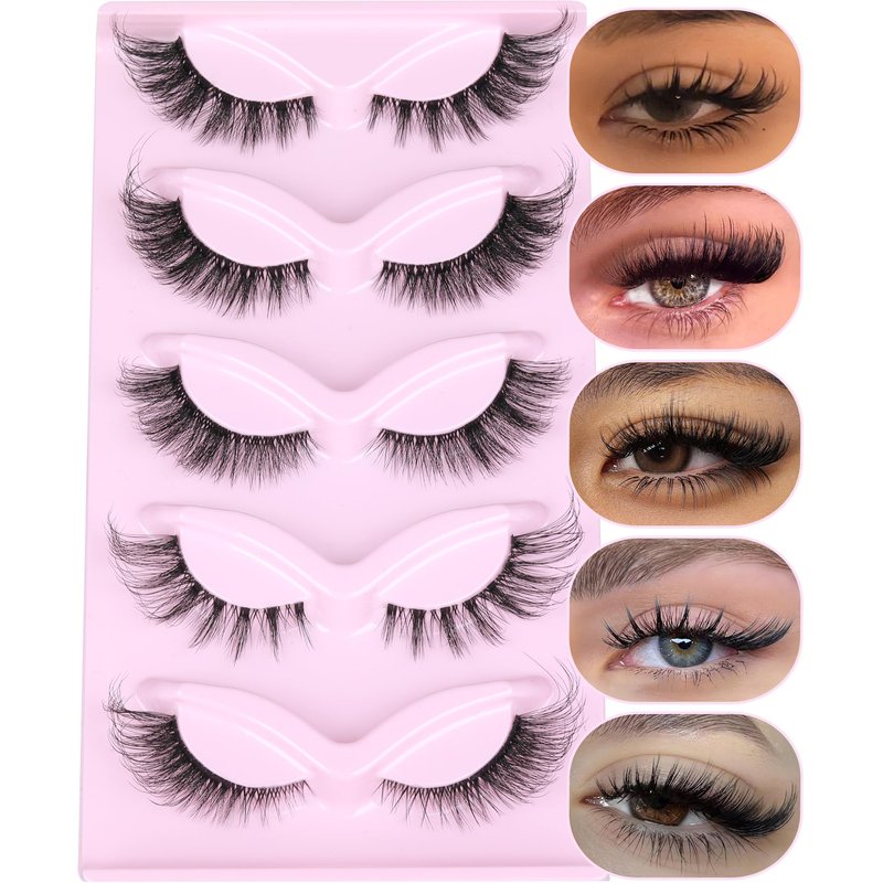 Cat Eye Lashes Fairy Eyelashes Wispy Fluffy False Eyelashes Long Strip Fake Eyelashes 5 Styles Mixed Fluffy Mink Lashes with Long Tail Fox Eye Lashes Pack 5 Pairs