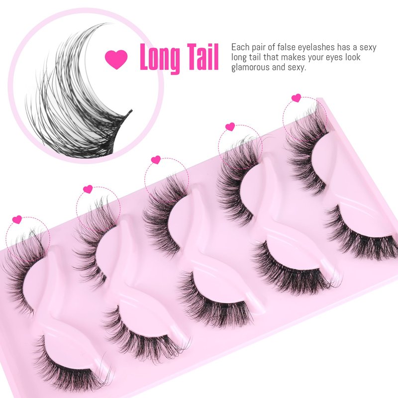 Cat Eye Lashes Fairy Eyelashes Wispy Fluffy False Eyelashes Fox Strip Fake Eyelashes 5 Styles Mixed Fluffy Mink Lashes with Long Tail Eye Lashes Pack 5 Pairs