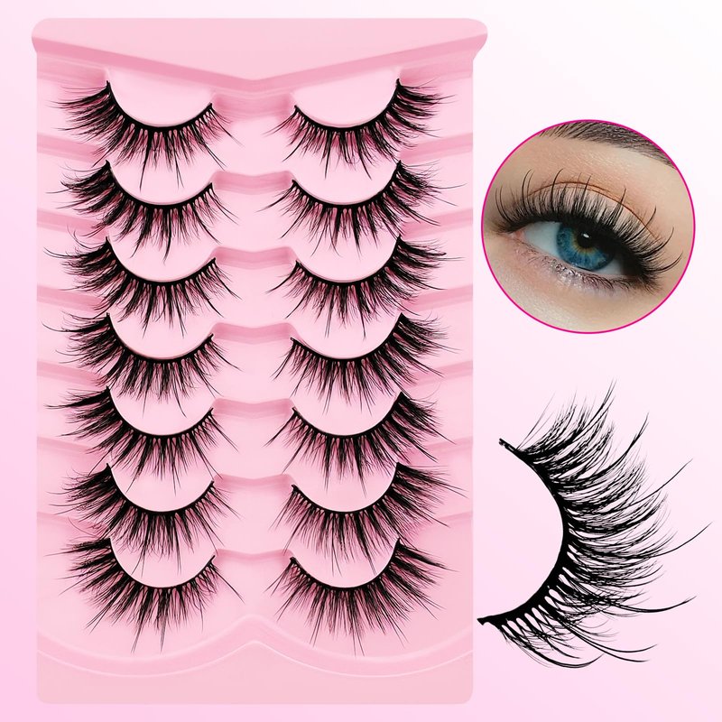 cat-eye lashes flu-ffy 18mm 20mm 22mm manga anime spiky fox eye lashes mink wispy fairy curly volume thick dramatic eyelashes that look like extensions faux mink natural look false eyelashes fake