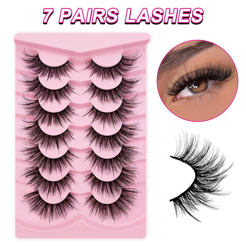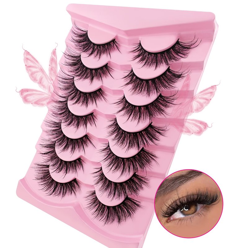 Cat-Eye Lashes Flu-ffy 22mm Manga Lashes Wispy Fairy Eyelashes, Curly Volume Spiky Lashes Faux Mink False Eyelashes that look like extensions Lashes Natural Look 7 Pairs Pack(ZD72)