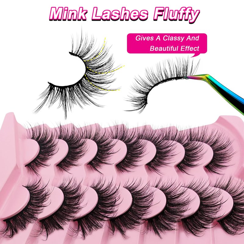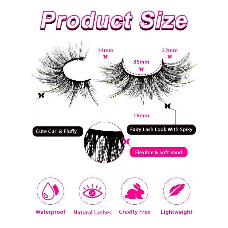 cat-eye lashes flu-ffy 18mm 20mm 22mm manga anime spiky fox eye lashes mink wispy fairy curly volume thick dramatic eyelashes that look like extensions faux mink natural look false eyelashes fake