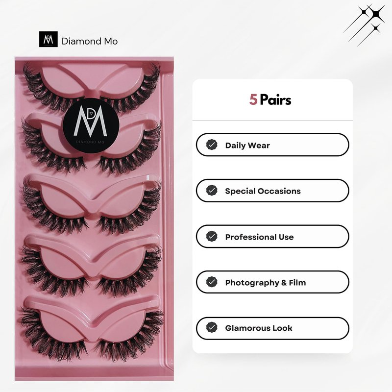 Whether you're going for a chic daytime look or a glamorous evening ensemble, these versatile lashes are your perfect beauty companion. Each pack includes five pairs, providing you with multiple opportunities to dazzle and shine.
