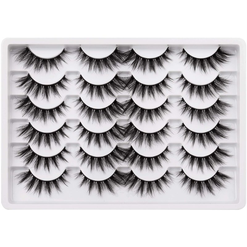 Cat Eye Lashes Pack Wispy 3D Faux Mink Lashes 18 mm False Eyelashes Soft Reusable Handmade Fake Eyelashes, 12 Pairs Pack by Pawotence