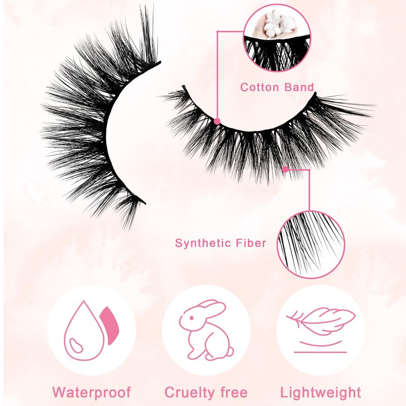 - 100% Vegan and Cruelty Free:With attention to detail, each pair of lashes is made from synthetic mink-like material and carefully crafted to provide a high quality product while avoiding harm to small animals.