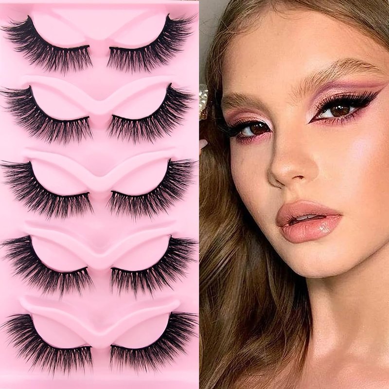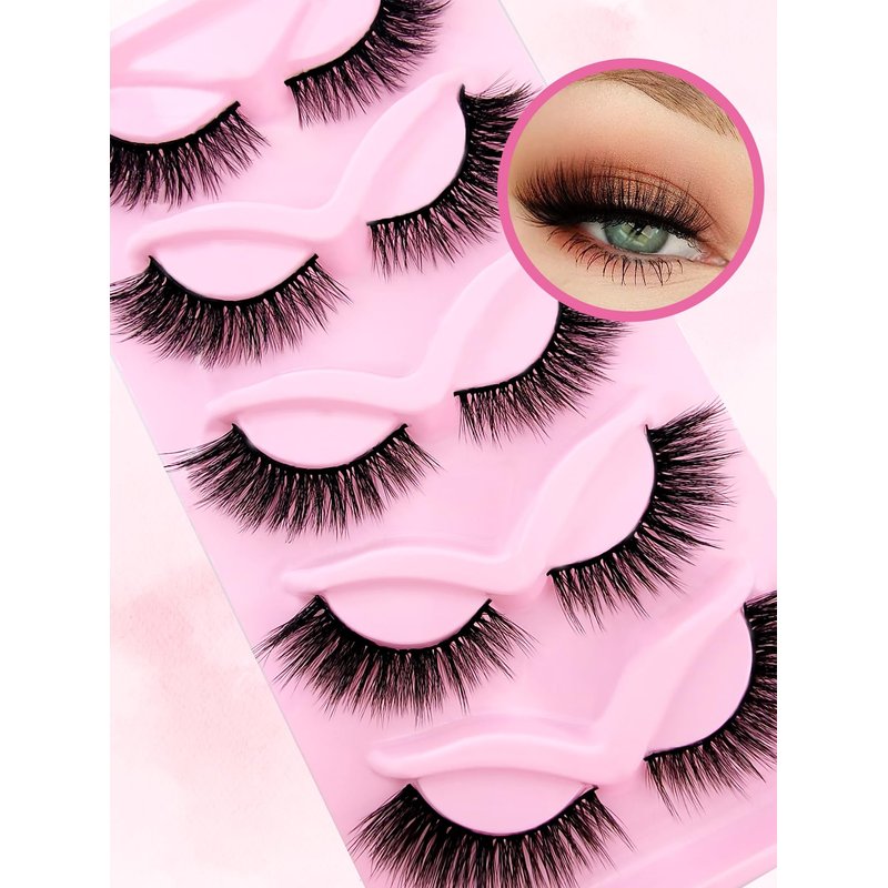 cat-eye lashes wispy 15mm 18mm 20mm long fox eye winged lashes natural look eyelashes volume soft faux mink false eyelashes fake 5 pairs pack