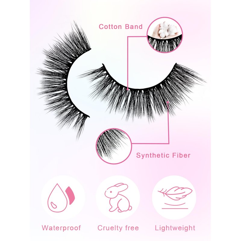 - 100% Vegan and Cruelty Free:With attention to detail, each pair of lashes is made from synthetic mink-like material and carefully crafted to provide a high quality product while avoiding harm to small animals.