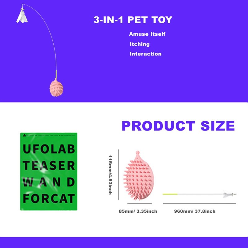 - 【2 INTERACTIVE MODES】CAT PLAYING MODE, insert the cat stick pole into the base. The swinging feathers will attract the cat’s attention and keep the cat in a busy and excited state. HAND-HELD MODE, take the funny cat stick out of the base, tease the cat with feathers, and enter the state of interacting and playing with your cat.