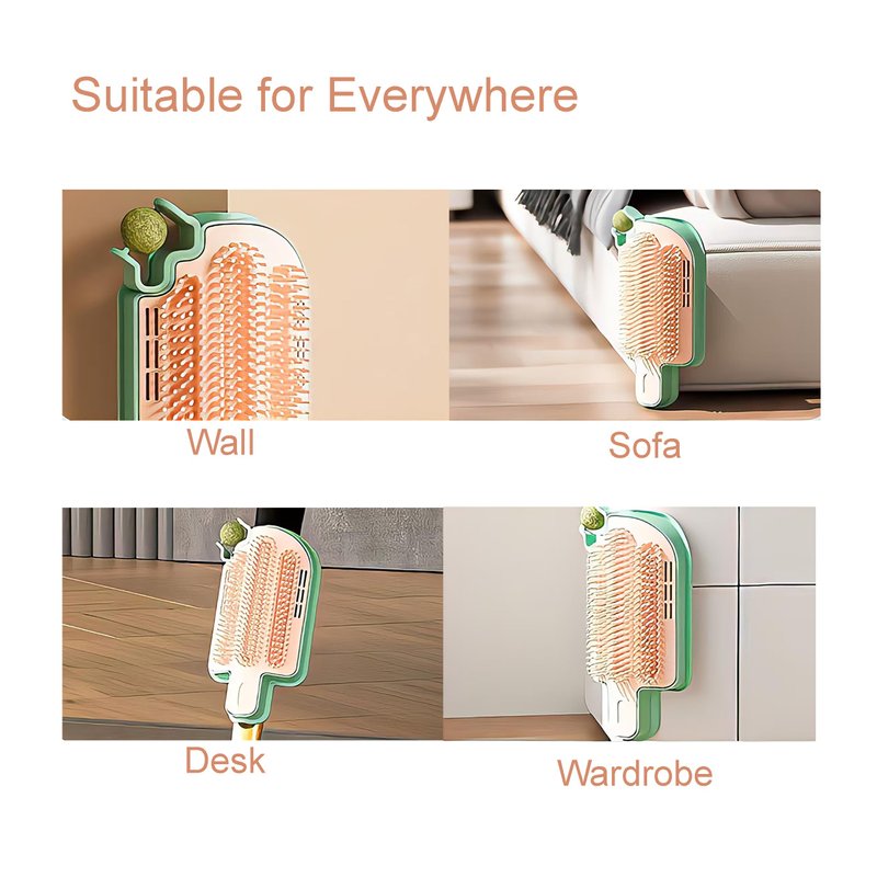 Cat Self Grooming with Catnip Toys for Indoor Cats 2 Pack, Stick on Wall Cat Brush with Catnip Ball Toys for Cats, 2 in 1 Massage & Self Grooming, Cat Self Groomer for Indoor Cats, Cat Corner Brush