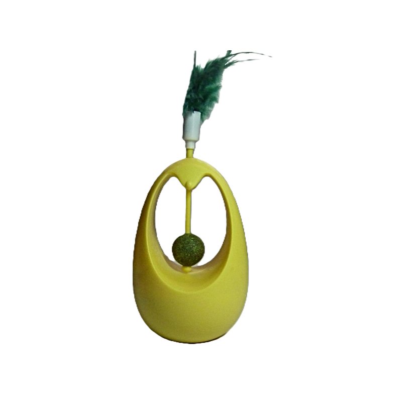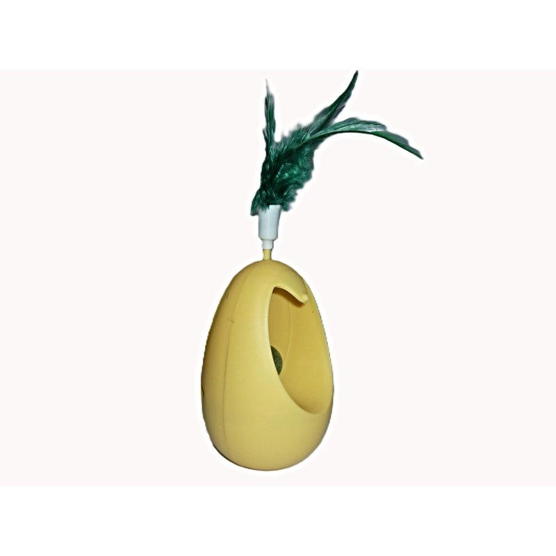 Eco friendly interactive cat toy: no need of batteries, no scratching furniture with this feathered cat toy with catnip.