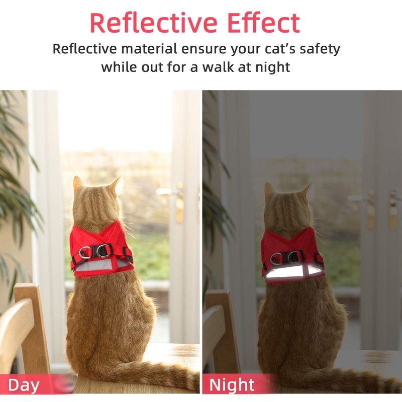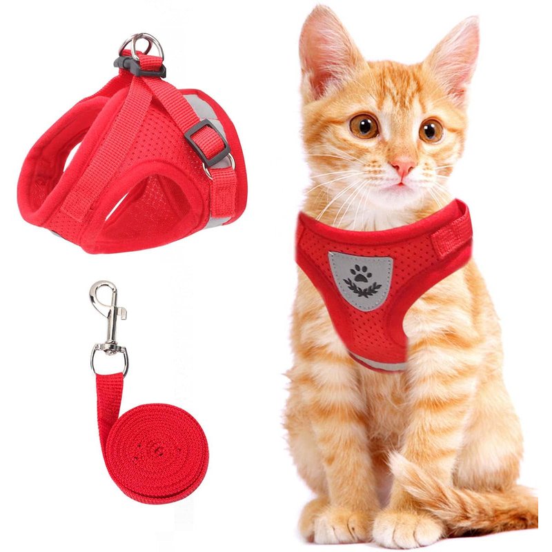 Cat Vest Harness and Small Dog Vest Harness for Walking, All Weather Mesh Harness, Cat Vest Harness with Reflective Strap, Step in Adjustable Harness for Small Cats (Red, XS)