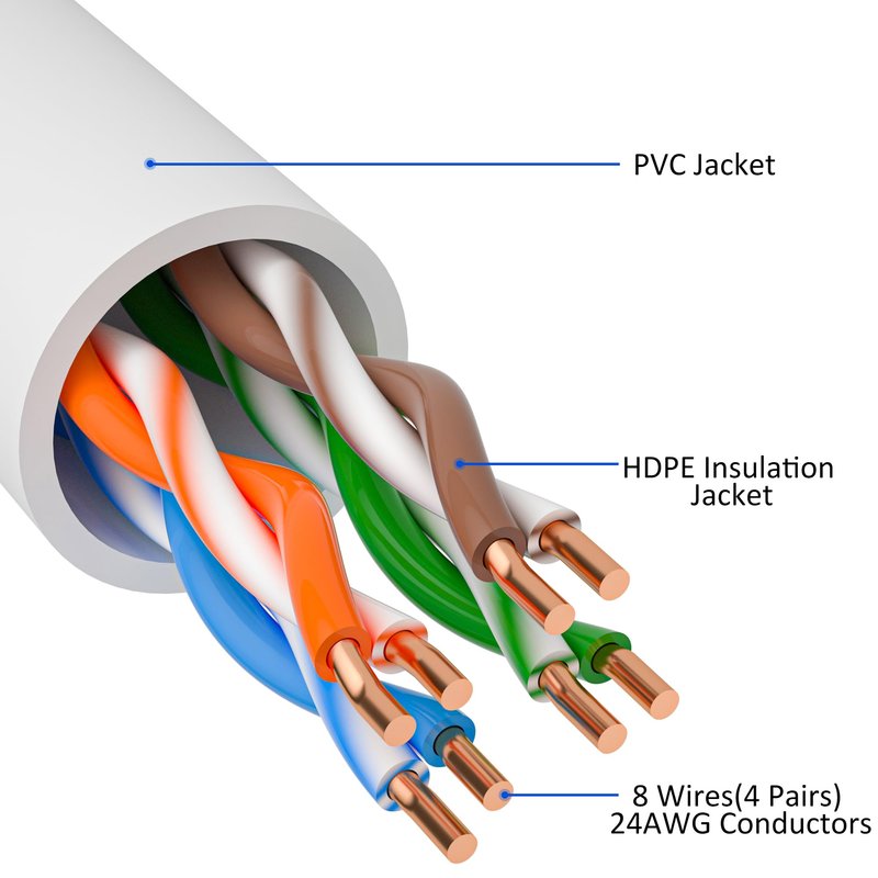 - 【Made of Premium Materials】: Kxable Ethernet Cable features 8 high-quality 24AWG copper-clad aluminum solid wires and 8P8C RJ45 connectors with gold-plated contacts. Each of the 4 unshielded twisted pairs (UTP) are separated by a PE cross insulation to avoid signal interference. The molded strain-relief boot provides durability, and ensure a secure connection.