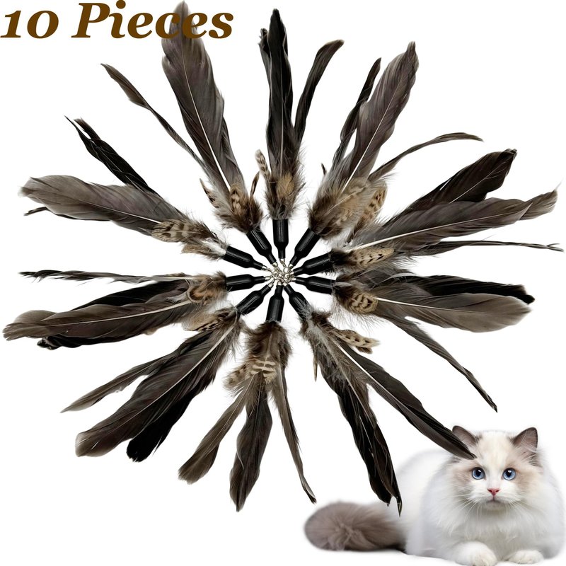 CATDABIR Cat Feather Toys Refills Da Bird Cat Toy, 10 PCS Natural Feather Da Bird Refills, Cat Wand Replacement Feathers for Cat Toys