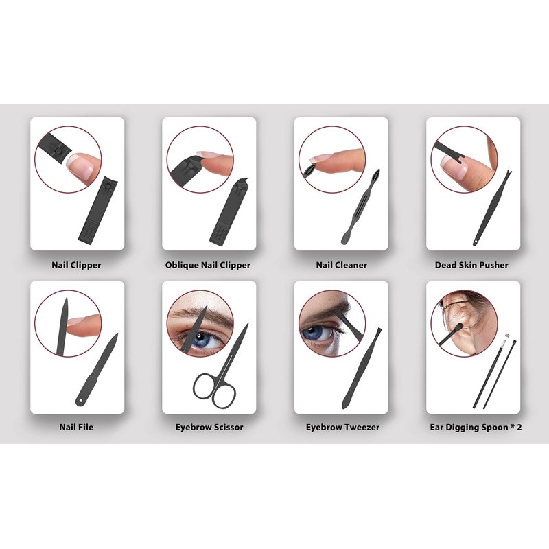 - Stylish travel case keeps everything together - A sleek black case provides dedicated compartments for each tool to keep your set organized at home or on the go. Hard shell prevents damage so you have a convenient all-in-one solution for nail grooming anywhere.