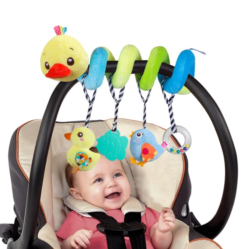 Caterbee Baby car seat Toys, Activity Spiral hangings Stroller Toys, Plush Crib Toys with Squeaky for boy or Girl (Duck)