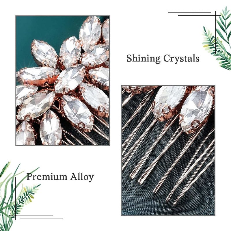 Catery Crystal Bridal Hair Comb Rose Gold Wedding Hair Piece Rhinestone Bride Hair Accessories for Women and Girls