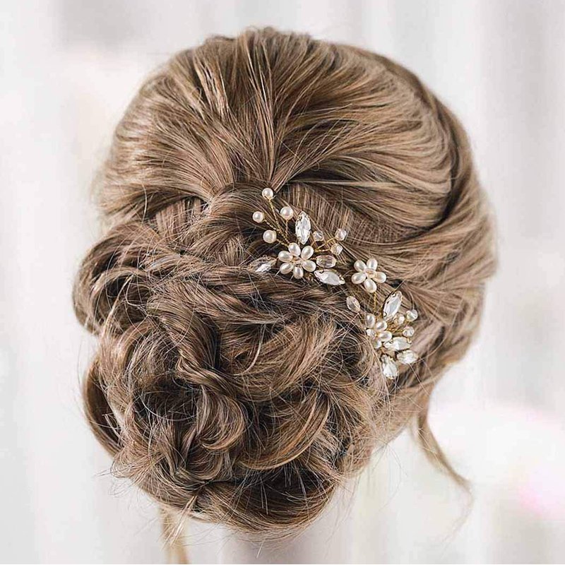 - ★Wedding headpieces for bride and bridesmaids are made of Pearl,Flower and Pins;Pack of 2;Gold,Silver and Rose Gold color for choose.Color:Gold;