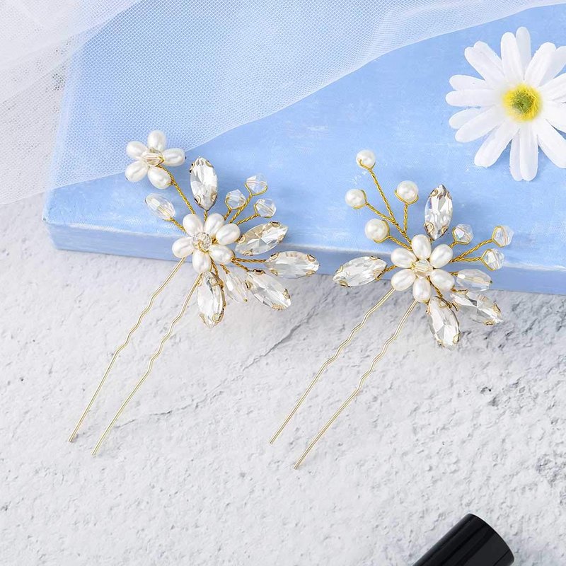 Catery Flower Bride Wedding Hair Pins Crystal Pearl Hair Set Jewelry Headpieces Bridal Decorative Hair Accessories for Women Pack of 2 (Gold)