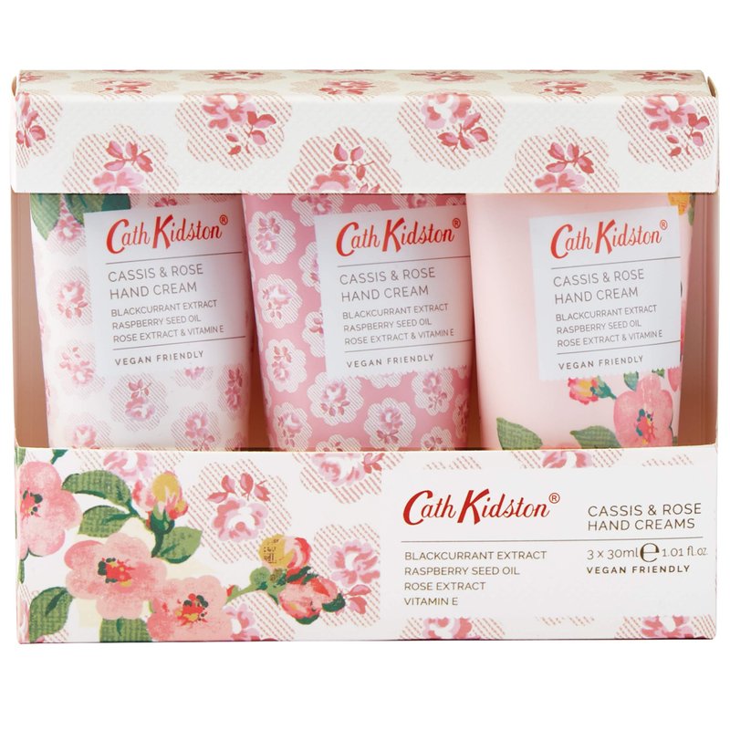 Cath Kidston Beauty Freston Cassis and Rose Hand Cream Trio Gift Box Travel Size, 3 x 30 ml