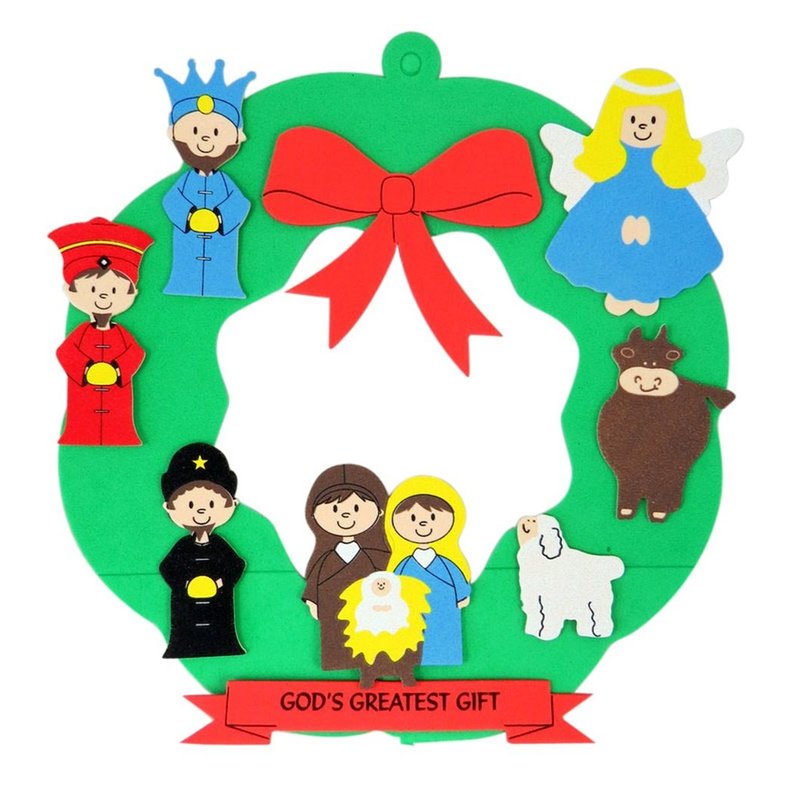 Catholic Brands DIY Christmas Nativity Wreath Foam Arts and Crafts Kit, God's Greatest Gift, Fun Holiday Activities for Church Groups, 9 Inch