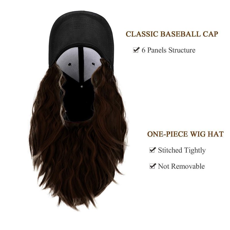 - One-Piece Design: The wig is securely attached to the baseball cap for easy, all-in-one wear. Note: The wig is not detachable.