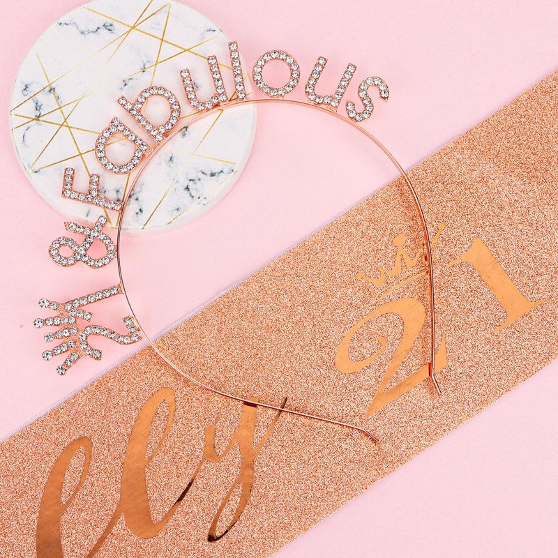 - Birthday Headband-CAVETEE Birthday headband set made of sturdy hard alloy, encrusted with dazzling rhinestones. Delicate designed for birthday girl specially. Perfect party favors for her cherish 21st birthday. Makes her the most special one in crowd.