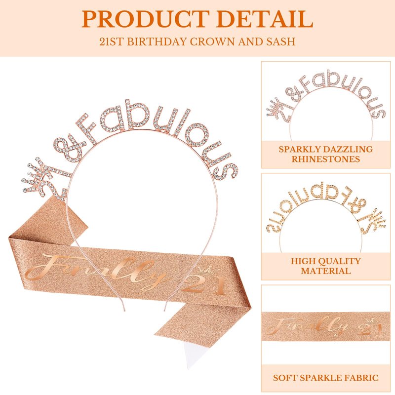 - One Size Fits All-The birthday sash is 63.77 inches long, and our sash fits all types of bodies. The Happy Birthday set comes with pins to adjust the size of the finally 21 sash. The width of the birthday headband can be stretched according to your head.