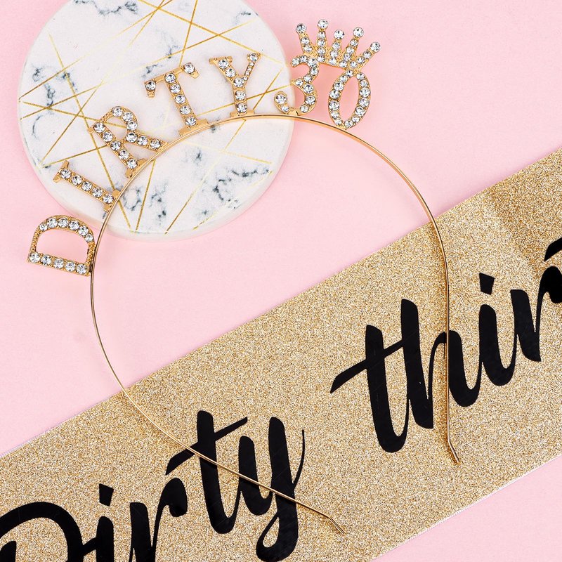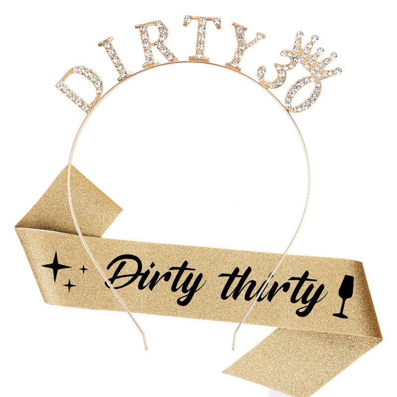 " DIRTY 30” Sash + Rhinestone Tiara Gifts Set.