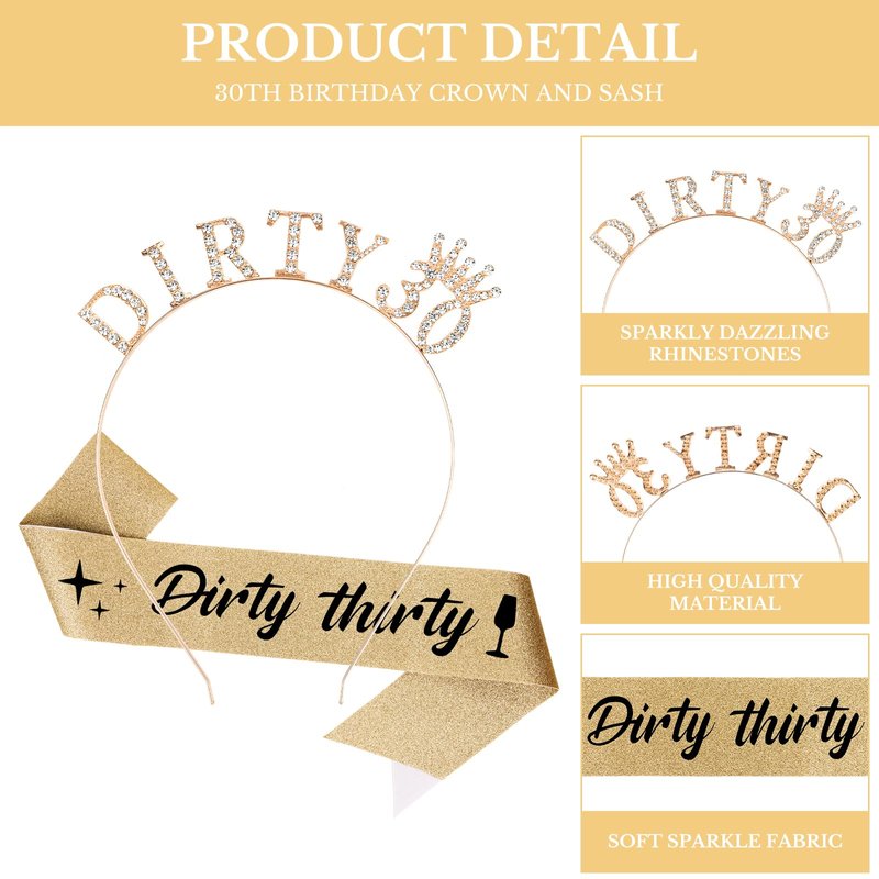- The Perfect 30th Birthday Crown for Girl "DIRTY 30” Sash + Rhinestone Tiara Gifts Set.