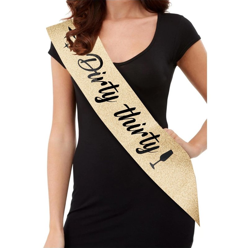 - Birthday Sash-The sash made of premium soft ribbon. Unlike other poorly made sashes, this sash does not tear or wrinkle easily. No need to worry about letters peeling off. "DIRTY 30” Sash make you stand out with this sash at Birthday Party.