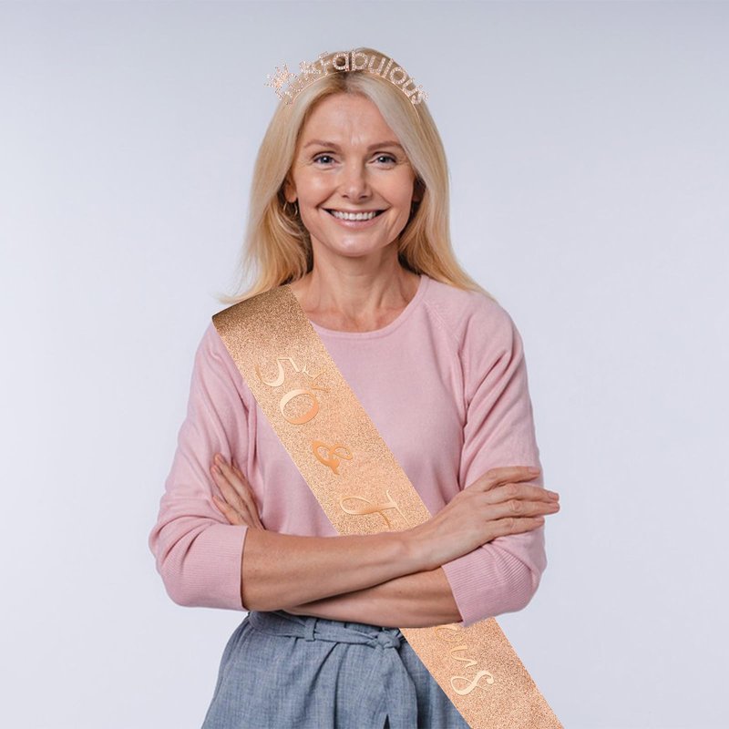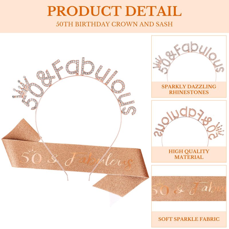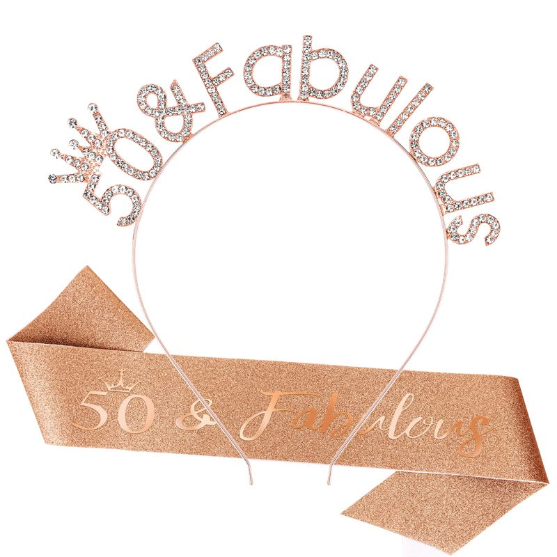 - The Perfect 50th Birthday Crown for Women "50 & Fabulous” Sash + Rhinestone Tiara Gifts Set.