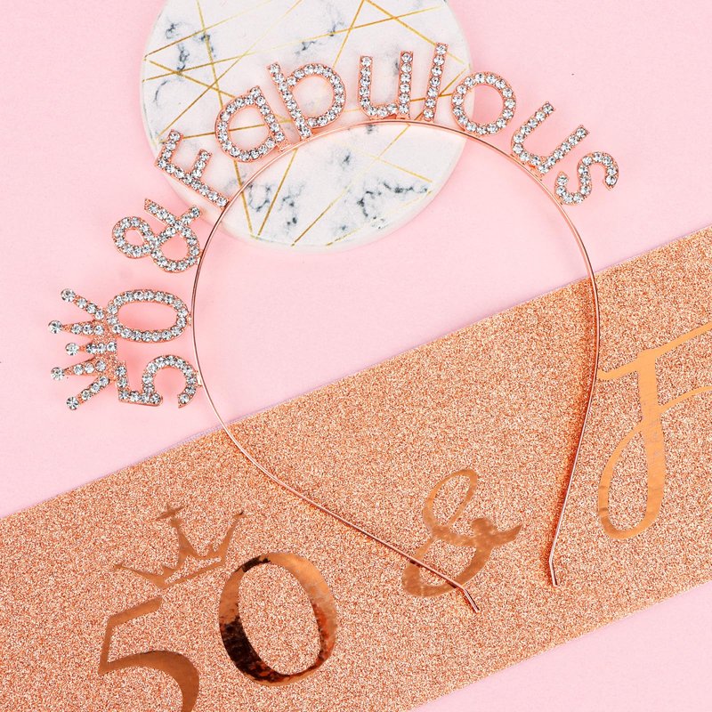- Birthday Headband-CAVETEE Birthday headband set made of sturdy hard alloy, encrusted with dazzling rhinestones. Delicate designed for birthday girl specially. Perfect party favors for her cherish 50th birthday. Makes her the most special one in crowd.