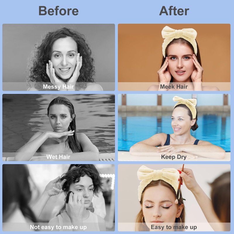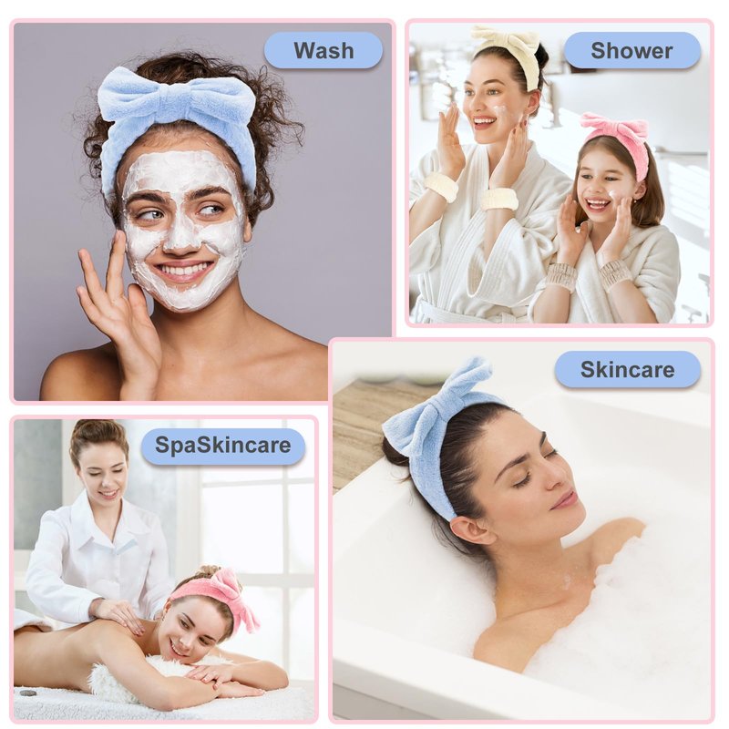 - 【Face Headband with Bow】The cute bowknot design makes you look cute and sweet. The skincare accessories keeps hair from falling in front of your face and provides a dry barrier for your hair while you wash your face, as does a wrist strap that keeps liquids from splashing on your arms.